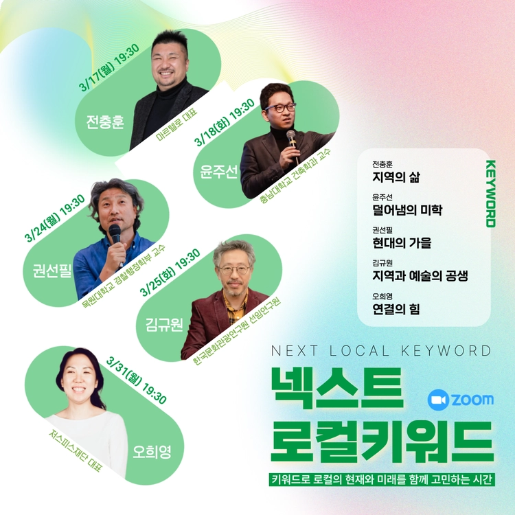 마을은 거대한 역사 뿐 아니라, 개인들의 작고 소중한 이야기까지 품어주는 우리의 뿌리입니다. 마을에서 머물고, 바라보고, 만나는 일만으로도 우리는 많은 것을 체감할 수 있습니다. 오래된 모습을 간직한 옛 마을이야말로 지역 특유의 풍경과 음식, 생활문화를 통해 고유의 매력을 만날 수 있는 장소입니다. 뿐만 아니라, 마을을 지탱하는 커뮤니티의 힘은 우리가 회복해야 할 미래의 가치를 다시금 생각하게 합니다. 10년후그라운드가 위치한 양림동은 가장'광주다움'을 느낄 수 있는 마을입니다. 서양 선교사들의 섬김의 정신이 담긴 근대 건축물, 주민들의 이야기가 살아 숨쉬는 옛 집들과 골목길, 짧지 않은 시간동안 마을을 터전으로 삼아 온 예술인들의 비밀스런 공간들, 숲과 자연이 어우러진 양림동만의 독특한 식생(植生)은 지금까지 몰랐던 광주의 매력을 발견케 할 것입니다.